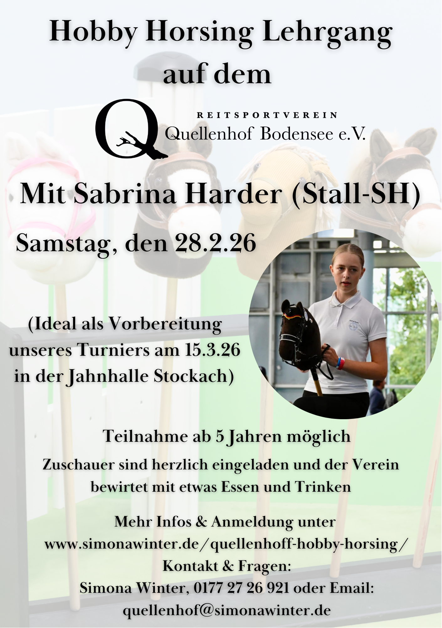 Da die Lehrgänge so gern besucht werden bietet Sabrina vor unserem turnier auch noch mal einen Hobby Horsing Dressur und Spring Lehrgang an. Wir freuen uns über Eure Anmeldungen